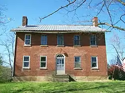 The present structure is one of Ohio's oldest extant Federal houses, featuring brick walls that rest on a foundation of sandstone with a full basement. Two-and-a-half stories tall,[2] and topped with a metal roof,[3] the walls are built in Flemish bond. Central to the four-bay symmetrical facade is a rounded-arch main doorway with a transom and the original fanlight.[2] A brick smokehouse is the only remaining original outbuilding remaining on the property.
