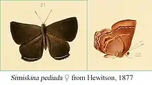 Simiskina pediada is a butterfly in the family Lycaenidae. It is found from southern Burma to Indochina, Peninsular Malaysia and Singapore.
