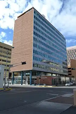 The Simms Building is historic high-rise office building in downtown Albuquerque, New Mexico. Designed by Flatow and Moore and completed in 1954, it was the city's first large-scale modernist building and is regarded as "Albuquerque’s best example of the International Style".[7] The building was added to the New Mexico State Register of Cultural Properties in 1997 and the National Register of Historic Places in 1998, only 44 years after it was completed.
