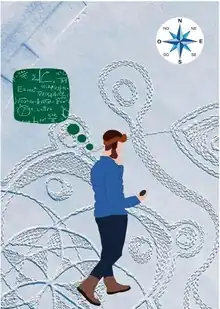 ![]() Artistic impression of Simon Beck creating math-based figures while walking in snow with the aid of a compass | |