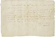 Chance Bradstreet, the African American slave that was a subject of the "within these walls"[9] exhibit at the National Museum of American History was born in this home in 1762. He was later sold to Abraham Dodge of Ipswitch by Isaac Story.[10] A copy of the agreement between Isaac Story and Abraham Dodge to lease Chance is shown below.