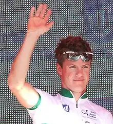 Simon Clarke (born 18 July 1986) is an Australian professional road racing cyclist, who currently rides for UCI WorldTeam Israel–Premier Tech.[4][5] He previously rode for the Astana (2011) and Orica–GreenEDGE (2012–2015) teams in the UCI World Tour.[6] Before turning professional, Clarke competed in track cycling as an Australian Institute of Sport scholarship holder.[7] He is not related to fellow Australian cyclist and past teammate Will Clarke.
