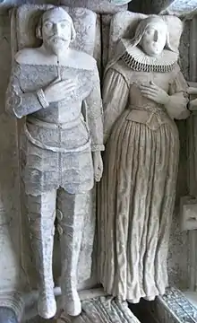 Effigies of Leach and his second wife Katherine Turbervile. Detail from his monument in St Bartholomew's Church, Cadeleigh