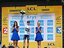2017 saw Yates collect stage wins at two prestigious stage races, Paris–Nice and the Tour de Romandie. He placed second at the latter, his highest finish in a UCI World Tour stage-race at the time.[27] He finished 7th overall at the Tour de France and won the young rider classification, matching the feat achieved by his twin brother a year prior.