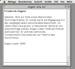 It can be considered similar to Windows' WordPad application. In later versions it also gained additional read only display capabilities for PICT files, as well as other Mac OS built-in formats like Quickdraw GX and QTIF, 3DMF and even QuickTime movies.[2] SimpleText can even record short sound samples and, using Apple's PlainTalk speech system, read out text in English. Users who wanted to add sounds longer than 24 seconds, however, needed to use a separate program to create the sound and then paste the desired sound into the document using ResEdit.[2]