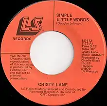 "Simple Little Words" is a song written by Douglas Johnson that was originally recorded by American Christian and country music singer Cristy Lane. It was released as a single in 1979 via LS Records and became a top ten hit single on the country charts. The song was later released on Lane's 1979 album of the same name. It received positive reviews from writers and critics.