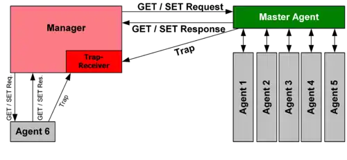 In typical uses of SNMP, one or more administrative computers called managers have the task of monitoring or managing a group of hosts or devices on a computer network. Each managed system executes a software component called an agent which reports information via SNMP to the manager.