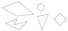 In geometry, a simple polygon /ˈpɒlɪɡɒn/ is a polygon that does not intersect itself and has no holes. That is, it is a flat shape consisting of straight, non-intersecting line segments or "sides" that are joined pairwise to form a single closed path. If the sides intersect then the polygon is not simple. The qualifier "simple" is frequently omitted, with the above definition then being understood to define a polygon in general.
