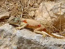 The Sinai agama (Pseudotrapelus sinaitus) is an agamid lizard found in arid areas of southeastern Libya, eastern Egypt,[2] Israel, Jordan, Syria, Saudi Arabia, Oman, eastern Sudan, Ethiopia, Eritrea, and Djibouti.
