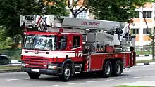 The Aerial Ladder (AL) is a ladder truck used in the SCDF for aerial firefighting and rescue. It has an operational height of 56 metres.