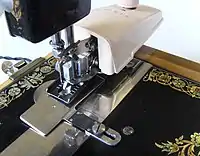 Singer separately sold a hemstitching attachment that is compatible with 27-series machines. The original version is a passive device, Singer part number 28915.[38] Later, a more sophisticated needle-clamp-powered attachment was offered—Singer part number 121387.