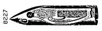 | * Singer parts lists give contradictory information about the 8301 shuttle body. The parts lists state[14] that both the 8227 and the 8327 shuttle assemblies use it, but the pictures given of those assemblies show completely different shuttle bodies. The correct answer is probably 8327 because shuttles found in the wild stamped "8301" or sometimes "301" are the later wasp-waisted sort. | ||||