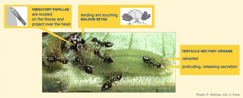 - DeVries, P.J. & Baker, I. (1989) Butterfly exploitation of a plant-ant mutualism: adding insult to herbivory. Journal of the New York Entomological Society 97: 332–340.