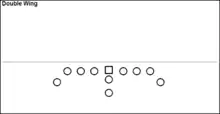 The double-wing formation in American football usually includes one wide receiver, two wingbacks, one fullback, and one tight end.