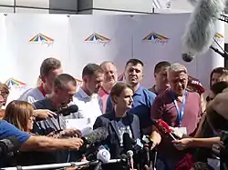On 13 September 2019, a group of students from the association "1 of 5 Million" locked themselves inside the Rectorate, blocking anyone from entering. Their main demand was that rector Popović, on Radio Television Serbia, calls for premier Brnabić to sack Mali from the government citing conflict of interest since Mali, as a finance minister, assigns funds to the university's budget. Counter group, some of which admitted they were summoned by the ruling Serbian Progressive Party (SNS) also gathered, clashing with the students.[6][7] Others were identified as party activists via social networks.[83] Groups of citizens who supported the students gathered in front of the building, including some professors and public and opposition figures. University's governing bodies accused the students of non-academic behavior and political demands.[84][85][86][87][88]