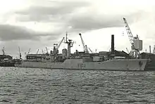 The Spanish ambassador to Ireland, Luis Jordana de Pozas Fuentes,[12] attempted to communicate with the captain of the Sonia via radio but was unsuccessful, allegedly because the crew refused to answer the call.[3] The chase continued through a force 8 storm.[2][3][13] The Irish Department of Foreign Affairs was consulted over whether the Aisling could receive permission to engage with her heavier 40 mm (1.6 in) Bofors L70 autocannon.[14][15] It was decided that the use of the weapon might sink the Sonia and endanger her crew so was not approved. The pursuit was abandoned shortly after the Sonia and Aisling entered the British exclusive economic zone (EEZ).[15][16]