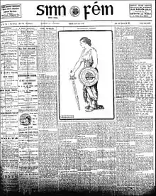 The case against Griffith was weak but the judge found him far "too saucy in his attitude"[2] and ordered him to pay £50 in damages to the priest and £253 3s. 9d. for court costs.[3] At this stage the company was already in financial straits and the board of directors did not have the necessary £300. Griffith and the Board had, however, anticipated such an outcome and when the court-appointed bailiffs called on the Fownes Street office of the United Irishman Ltd. to collect the money, they discovered that the company had just gone into liquidation and seized the only assets they could find: a table, a few chairs and some manuscripts.[4] Griffith took advantage of the court case to make a new start with what he hoped would be a more financially viable company, less dependent on funds from the Irish Republican Brotherhood (IRB) in the British Isles and Clan na Gael in the United States,[5] both of which had been behind the setting up of the United Irishman in 1899.