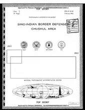 During and after the 1950s, when India began patrolling this area and mapping in greater detail, they confirmed what the 1914 Simla agreement map depicted: six river crossings that interrupted the main Himalayan watershed ridge. At the westernmost location near Bhutan north of Tawang, they modified their maps to extend their claim line northwards to include features such as Thag La ridge, Longju, and Khinzemane as Indian territory.[8] Thus, the Indian version of the McMahon Line moves the Bhutan-China-India trijunction north to 27°51’30"N from 27°45’40"N.[8] India would claim that the treaty map ran along features such as Thag La ridge, though the actual treaty map itself is topographically vague (as the treaty was not accompanied with demarcation) in places, shows a straight line (not a watershed ridge) near Bhutan and near Thag La, and the treaty includes no verbal description of geographic features nor description of the highest ridges.[8][31]