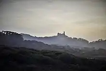 The Sintra Mountains (Portuguese: Serra de Sintra), is a mountain range in western Portugal. Its highest point is at 529 meters (1,736 ft) near Sintra. The range covers about 16 kilometers (10 mi) from the resort town of Sintra to Cabo da Roca (Cape Roca) on the Atlantic Ocean. It was known to the Ancient World as Lunae Mons (mountain of the Moon) and was the legendary retreat of Diana the Huntress (known as Cynthia to the Romans, from the Greek Κύνθια, hence Çintra).
