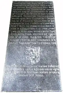 - Secondly to Elizabeth Godolphin (1635-1707), eldest daughter of Sir Francis Godolphin (1605–1667), KB, of Godolphin, near Helston in Cornwall. This marriage produced four sons and four daughters.[4] His eldest surviving son was Sir Francis Northcote, 3rd Baronet (1659–1709).
