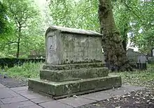 Page died on 25 May 1720 in his 51st year, and was buried at Greenwich on 2 June 1720. He left four children: two sons (Gregory and Thomas) and two daughters (Mary and Sophia).[1][3][4] The baronetcy, with his "immense fortune",[1] was inherited by his eldest son, Gregory. His widow died at Greenwich on 4 March 1729 in her 56th year. She was buried in a vault at Bunhill Fields on the outskirts of the City of London. Her epitaph hints at a painful illness, which was possibly Meigs's syndrome.[5] The epitaph reads in part:[2][6]