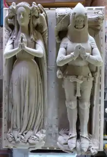 - Edward Courtenay,[14] only son and heir apparent who predeceased his father aged 16, believed to be represented by the very fine miniature alabaster effigy in Haccombe Church, next to the large monument to his parents. Two angels support his pillow and a dog is at his feet. Had he lived he would have been not only lord of the manor of Haccombe, but also Earl of Devon,[15] and would have prevented the Carews from inheriting Haccombe.