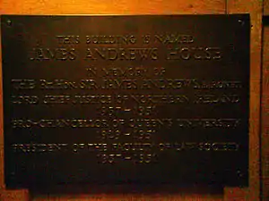The School of Law at Queen's University of Belfast named its building on University Square Sir James Andrews House in his honour.