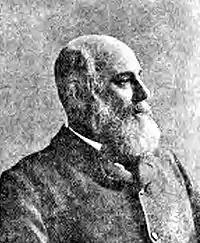 He was a local philanthropist, being responsible for building a school in Parwich in 1861 and then rebuilding Parwich church in 1873. Evans continued to own the Evans Bank until it merged in 1877 with the older Derby-based Compton's Bank.[6] Evans was created a baronet of Allestree Hall on 18 July 1887.[7] He chaired the first meeting of the Derbyshire County Council on 1 April 1889 when the authority consisted of 60 councillors and 20 aldermen.[2] He was High Sheriff of Derbyshire in 1872,[8] and a Deputy Lieutenant, Justice of the Peace and Fellow of the Royal Geographical Society. As well as Allestree Hall, he owned the manor of Holbrooke,[9] the Parwich Hall estate and a house in Derby.[10]