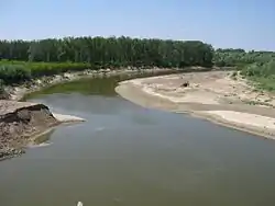 The Siret or Sireth (Ukrainian: Сірет or Серет, Romanian: Siret pronounced [siˈret], Hungarian: Szeret, Russian: Сирет) is a river that rises from the Carpathians in the Northern Bukovina region of Ukraine, and flows southward into Romania before it joins the Danube.[1][2] It is 647 km (402 mi) long,[3]:9 of which 559 km (347 mi) in Romania,[2][3]:9[4] and its basin area is 44,811 km2 (17,302 sq mi),[3]:6 of which 42,890 km2 (16,560 sq mi) in Romania.[2][3]:6[4] Its average discharge is 250 m3/s (8,800 cu ft/s).[3]:15 In ancient times, it was named Hierasus (Ancient Greek Ιερασός).
