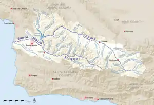 ![]() Map of the Santa Maria River watershed, including the Sisquoc River | |