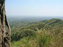 Sitakunda Upazila occupies an area of 483.97 square kilometres (186.86 sq mi),[31] which includes 61.61 square kilometres (23.79 sq mi) of forest.[32] It is bordered by Mirsharai to the north, Pahartali to the south, Fatickchhari, Hathazari and Panchlaish to the east, and the Sandwip Channel in the Bay of Bengal to the west.[33] The Sitakunda range is a 32-kilometre (20 mi) long ridge in the center of the upazila, which reaches an altitude of 352 metres (1,155 ft) above sea level at Chandranath or Sitakunda peak, the highest peak in Chittagong District.[16][34] Part of Sitakunda is covered by the low hill ranges, while the rest is in the Bengal flood plain.[34] To the north, Rajbari Tila at 274 metres (899 ft) and Sajidhala at 244 metres (801 ft) are the highest peaks in this range, which drops abruptly to a height of less than 92 metres (302 ft) in the vicinity of Chittagong City to the south.[34] About 5 kilometres (3 mi) north of Sitakunda Town is the Labanakhya saltwater hot spring, which has been proposed as a source of geothermal energy.[35][36] There are two waterfalls in the hills: Sahasradhara (thousand streams) and Suptadhara (hidden stream).[37] Both have been identified as sites requiring special attention for protection and preservation by the National Heritage Foundation of Bangladesh.[38]