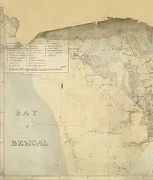 Along with the rest of Bengal, Sitakunda came under the rule of the British East India Company after the company's defeat of the Nawab of Bengal at the Battle of Plassey in 1757. Rapid growth in the Bengali population since then resulted in an exodus of non-Bengali people from Sitakunda and its vicinity to the Chittagong Hill Tracts.[18][19] During the Ardhodaya Yog movement, a part of the Swadeshi Indian independence movement, the governance of Sitakunda was briefly in the hands of Indian nationalists when, in February 1908, they took over the central government in Kolkata.[20][21] In 1910, Indian Petroleum Prospecting Company drilled here for hydrocarbon exploration, the first such activity in East Bengal. In 1914, the first onshore wildcat well in Bangladesh was drilled at Sitakunda anticline to a depth of 762 metres (2,500 ft).[22] By 1914, however, all four of the wells drilled had proven to be failures.[23]
