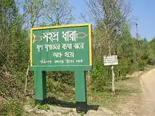The first eco-park in Bangladesh, Sitakunda Botanical Garden and Eco Park, was established in 2001 along with a botanical garden, under a five-year (2000–2004) development project at a cost of Tk 35.7 million on 808 hectares (1,997 acres) of the Chandranath Hills in Sitakunda.[129] The eco-park was established to facilitate biodiversity conservation, natural regeneration, new plantations and infrastructure development, as well as to promote nature-based tourism to generate income. The park, 405 hectares (1,001 acres), and the garden, 403 hectares (996 acres), under the Bariadhala Range of Chittagong Forest Division, are rich with natural Gymnosperm tree species including Podocarpus neriifolius and species of Gnetum and Cycas.[37] The park is reported to be able to receive 25,000 visitors in a single weekend.[130] With the botanical garden included, the number of visitors can reach up to 50,000.[131] According to the International Journal of Biodiversity Science and Management, however, "ignoring the dependence of local people on park resources created conflicts between local communities and the park authority" and "prohibition on the extraction of forest products from the park... make the livelihoods of surrounding villagers vulnerable".[132]