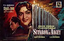 Sitaron Se Aagey (transl. Ahead of the Stars) is a 1958 Hindi Black-and-white family film written and directed by Satyen Bose. The film starred Ashok Kumar and Vyjayanthimala, with Johnny Walker, Rajasulochana, Shammi, Jagdish Sethi, Manmohan Krishna and Leela Mishra in supporting roles. The film was produced by V. L. Narasu. The film's score was composed by S. D. Burman with lyrics provided by Majrooh Sultanpuri. Editing was done by Bimal Roy and it was filmed by K. H. Kapadia.