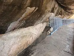 The archaeological monuments found in the area surrounding Sittanavasal village are the architectural features of the Arivar Kovil (Sittanvasal Cave), on the western side of the hill towards the north and the painting and sculptures found within its precincts, the Jaina beds, also known as Ekadipattam or Ezhadippattam in a natural cavern on the eastern side of the hill, the Samavasarana, a place of assembly of a tirthankara in the form of mural paintings on the roof of the cave temple, megalithic burial urns, stone circles, cairns, dolmens, cists from the Iron Age called mudu-makkal-thaazhi, and a submerged tarn called the Navach-chunai to the north of the natural cavern in the hill.[4][6][9] The Archaeological Survey of India is responsible for the maintenance of the Arivar Kovil and the Jaina beds.[4]
