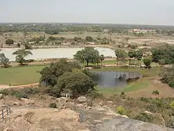 The Sittanavasal village is about 20 kilometres (12 mi) to the northwest of Pudukottai, just before Annavasal village and about 58 kilometres (36 mi) from Trichy. The entrance to the village has a welcome arch. Within its geographical setting there is a prominent hill of 70 metres (230 ft) height, which runs in the north–south direction, where many Jaina cave monuments are located.[7] Megalithic sites of the 1st century BC have also been excavated near the village, on the road to the monuments. It was a flourishing village during the Jaina period from the 7th to 9th century AD.[2][4][6] Before entering the Sittanavasal and on the road to the monuments, remains of prehistoric burial sites are seen. The Jain natural caverns, called Ezhadippattam are approached from the foothills. On the western slope of the central part of the hill is the cave temple which is approached by climbing a few 100 steps.[4][6]