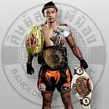 Sitthichai Sitsongpeenong (Thai: สิทธิชัย ศิษย์สองพี่น้อง, Thai pronunciation: [sìttʰíʨʰaj sìtsɔ̌ːŋpʰîːnɔ́ːŋ]; born September 23, 1991) is a Thai Muay Thai kickboxer who is currently signed to ONE Championship. Sitthichai is a former Lumpinee Stadium Welterweight Champion and Glory Lightweight Champion.[1] Combat Press ranks him as the #3 lightweight kickboxer in the world.[2] As of October 27, 2022, he is ranked #3 in the ONE Featherweight Kickboxing rankings and As of March 6, 2023, he is ranked #2 in the ONE Featherweight Muay Thai rankings.[3]