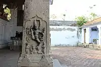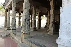 Uchinathar temple is located in Sivapuri, a place 5 km (3.1 mi) from Chidambaram. The temple has a three tiered rajagopuram on the eastern side with concentric rectangular walls surrounding the temple. The sanctum is approached through a pillared hall called mukha mandapa and an artha mandapa. The shrine of the Ambal is located in the mukhamandapa facing south. The presiding deity in the form of lingam (an iconic form of Shiva) is located in the sanctum. It is believed that the image is self manifested. There is a panel on the wall behind the image that depicts the marriage of Shiva and Parvathi. There is a circumabulatory passage around the shrines. The pillars in the hall leading to the sanctum has sculpted images depicting various Hindu legends.[1] The temple tank called Kripasamudram is located opposite to the temple.[3] The temple was in dilapidated condition during the early part of 20th century and was rebuilt.[4]