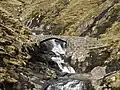 The same bridge on a Faroese stamp with art work by William Heinesen, showing the stone bridge over Breiðá just north of Skælingur.