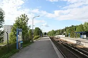 Skøyenåsen is a station on the Østensjø Line (Line 3) on the Oslo Metro, located between the stations of Godlia and Oppsal, 7.0 kilometers (4.3 mi) from Stortinget. The station was opened as a subway station 29 October 1967. Karl Stenersen was the station's architect.[1] Rail service through Godlia is older, having opened as a tram line already in 1926.[2]