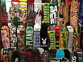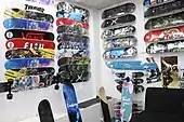 A skate shop or skateshop is a store that sells skateboards and skateboarding apparel.[1] When financially possible, skate shops sponsor local riders and promote skateboarding locally through skate videos and demonstrations, referred to as "demos".[2]
