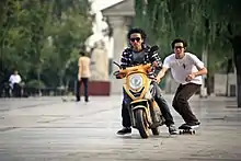 Skateboarding arrived in China in April 1986 when an American skateboarder arrived in China to study Chinese at the Beijing Language Institute. He says, "When I arrived in China, there wasn't even a word in Chinese for skateboard. People were really interested in learning to ride, and in a few years Chinese skaters started appearing in almost every city I travelled to".[1] Domestic skate companies and retailers began to appear at around the turn of the century,[2] bringing the average price for a skateboard of ordinary quality down from an expensive 1000 yuan to around 280 yuan as of 2009.[3] Skateboarding has been slow to develop in China because of the lack of a strong preexisting street culture and of skating infrastructure; nevertheless, it's estimated that as of 2009 there are 40,000 to 50,000 skateboarders in China.[4]