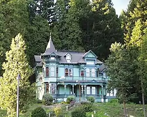 The butte is also the site of the Shelton-McMurphey-Johnson House, a Queen Anne Victorian residence built-in 1880 by a family that once owned the entire butte. Before trees grew up and obscured it, the house was known as the "Castle on the Hill". It was added to the National Register of Historic Places in 1984.[12] The name "Ya-Po-Ah" lives on in "Ya-Po-Ah Terrace", a controversial high-rise retirement home built at the foot of the butte in 1968.[13]