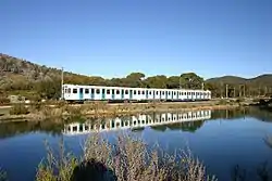 Construction commenced in October 1984, with tunnelling beginning in June 1985.[3] The 3.3 km Bilston Tunnel was constructed using a 5.5-metre (18 ft) tunnel boring machine, while the 2.6 kilometre Blue Cow tunnel was constructed using the traditional "drill and blast" method.[4] A consortium of Swiss and Australian companies (SLM, BBC, and Comeng[5]) provided the rolling stock, overhead wiring, sub-stations, communications and signalling. The 5.9 kilometre line opened from Bullocks Flat to Perisher on 26 July 1987 with the entire line opened through to Blue Cow on 31 March 1988.[6][7][8]