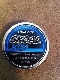 Skoal is a brand of smokeless tobacco. First produced by the U.S. Smokeless Tobacco Company (USSTC) in 1934, Skoal is considered a high-priced product within the dipping tobacco market. "Skoal" is an Anglicization of skoal, a term used often in Scandinavia to announce a toast of friendship, with connotations of well-wishing.