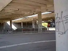The railway tracks run under the Hillerød Motorway at the station