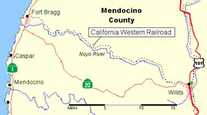 ![]() Map of the California Western Railroad (created using nationalatlas.gov) | |||||||||||||||||||||||||||||||||||||||||||||||||||||||||||||||||||||||||||||||||||||||||||||||||||||||||||||||||||||||||||||||||||||||||||||||||||||||||||||||||||||||||||||||||||||||||||||||||||||||||||||||||||||||||||||||||||||||||||||||||||||||||||||||||||||||||