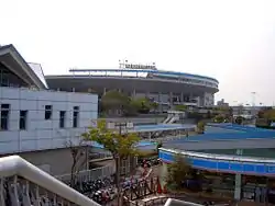 The stadium's field is one of two ballparks in Japan to have an American-style baseball field: An all-grass outfield and infield, with dirt basepaths. It opened on March 6, 1988 and holds 35,000 people.