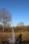 A skyrocket is a type of firework that uses a solid-fuel rocket to rise quickly into the sky; a bottle rocket is a small skyrocket. At the apex of its ascent, it is usual for a variety of effects (stars, bangs, crackles, etc.) to be emitted. Skyrockets use various stabilisation techniques to ensure the flight follows a predictable course, often a long stick attached to the side of the motor, but also including spin-stabilisation or fins.