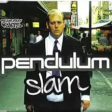 "Slam" is a song by Australian drum and bass band Pendulum. It was released on 19 September 2005 by independent label Breakbeat Kaos as a double A-side single with "Out Here", and it was their third release with the label. It peaked number 34 on the UK Singles Chart. Both songs have been included on their CD release of Hold Your Colour in July 2005. "Slam", as well as the "Prelude" track from Hold Your Colour, samples spoken word sections from the Headhunterz song "Rock Civilization". When the song is performed live with the full band, the first minute and a half is cut out and replaced by part of the Metallica song, "Master of Puppets". However, when the song was played in DJ sets prior to 2006, the track "Prelude" was played before it, as "Slam" was always the first track played.